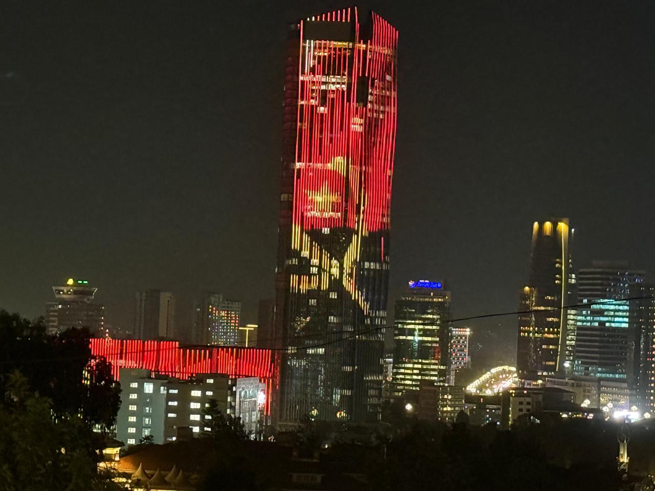 A bandeira de Angola esteve em destaque no edifício mais alto de Adis Abeba, conhecido por CBE Tower, por ocasião do 50.° aniversário da Independência Nacional.